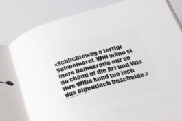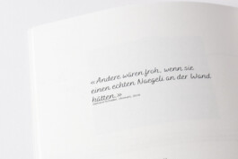 Harald Naegeli sprühte, wo er wollte. Auch im Grossmünster in Zürich besprühte er mehr als den vereinbarten Bereich und sprengte somit den Rahmen. Dies setzte ich gestalterisch um: Die Fotografien werden durch einen quadratischen Rahmen beschränkt, welcher durch die Illustrationen der Sprayereien gesprengt wird. Dieses Prinzip zeigt sich auch im Cover. Naegelis Arbeiten lösen bis heute gegensätzliche Reaktionen aus. Diese Kontroversen nehme ich typografisch auf. Im Innenteil finden sich wohlwollende, aber auch kritische Zitate aus Zeitungen, welche anhand der Fonts unterschieden, werden: Bold steht für Kritik, Handschrift für Zustimmung. Die dazu gehörige App widerspiegelt dieses Konzept, funktioniert jedoch auch eigenständig.